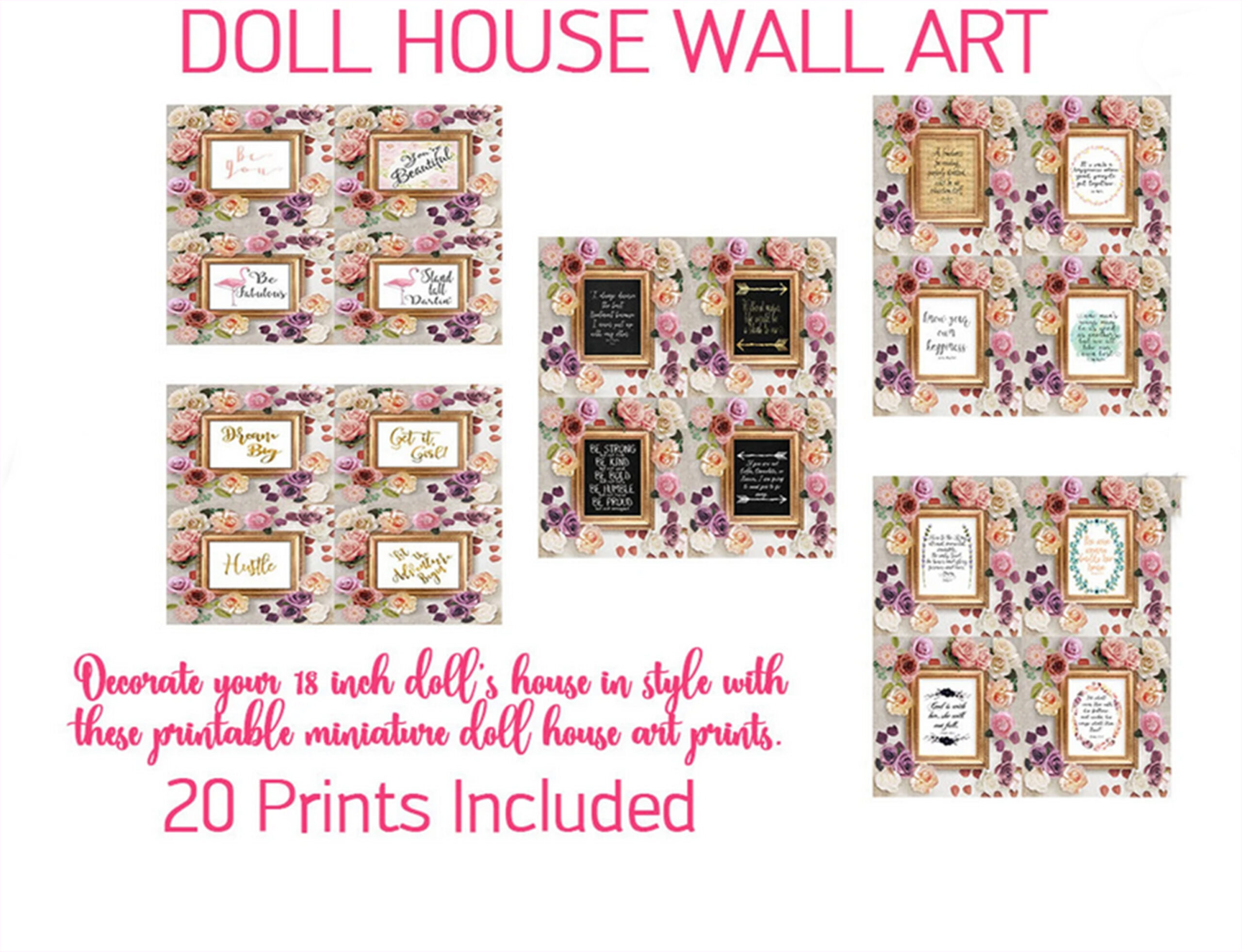 18 Inch Dollhouse Printable Wall Art, Doll House Miniature Decor, Dollhouse Accessories