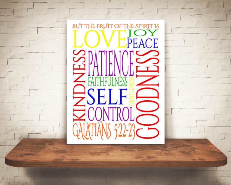 GALATIANS 5:22-23 BUT THE FRUIT OF THE SPIRIT IS LOVE, JOY, PEACE, PATIENCE, KINDNESS, GOODNESS, FAITHFULNESS, GENTLENESS, SELF-CONTROL; AGAINST SUCH THINGS THERE IS NO LAW. These Christian art prints will remind you to be filled with the Spirit so that…