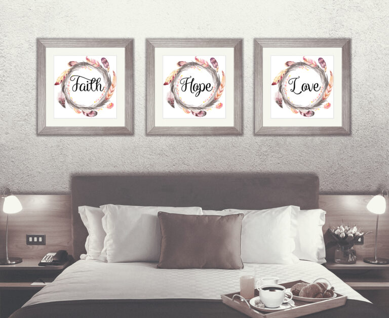 Elevate your home decor with this stunning Christian wall art set, featuring inspiring bible verses embraced by beautiful tribal wreaths. Highlighting the timeless message from 1 Corinthians 13:13, “And now abideth faith, hope, charity, these three; but the greatest of…