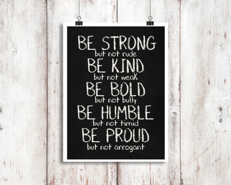 “Be strong, but not rude. Be kind, but not weak. Be bold, but not bully. Be humble, but not timid. Be proud, but not arrogant.” ~Jim Rohn This faux chalk quote print will look great in your home, the classroom,…