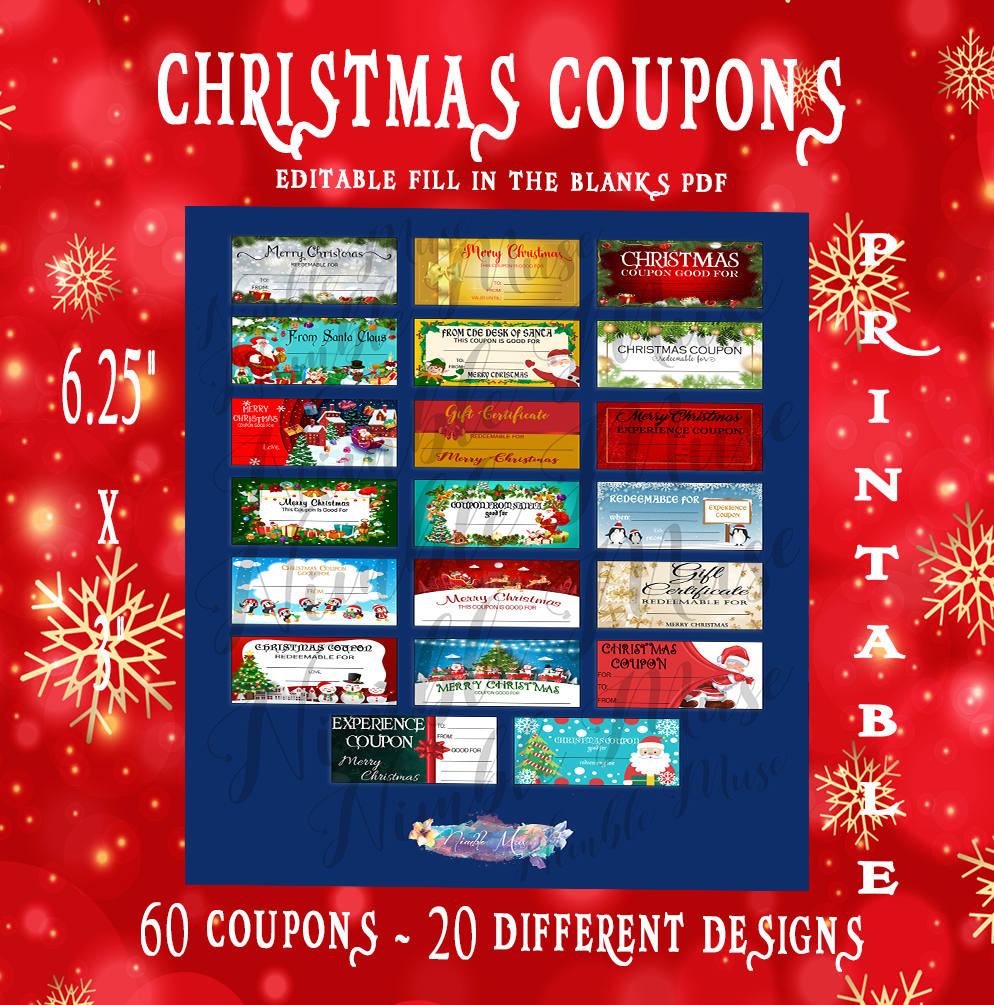 This beautifully designed Christmas Coupon Printable PDF includes 60 total coupons, featuring both blank editable versions and fill-in-the-blank options. Whether you’re gifting experiences, acts of service, or fun surprises, this coupon set makes it easy to create personalized, heartfelt gifts this holiday season