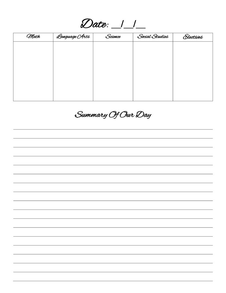 This daily journal page serves as record keeping in those states that require parents to keep a daily record of work done, and if not required in your state, this printable is an easy way to show your doubting family and friends what you do each day.