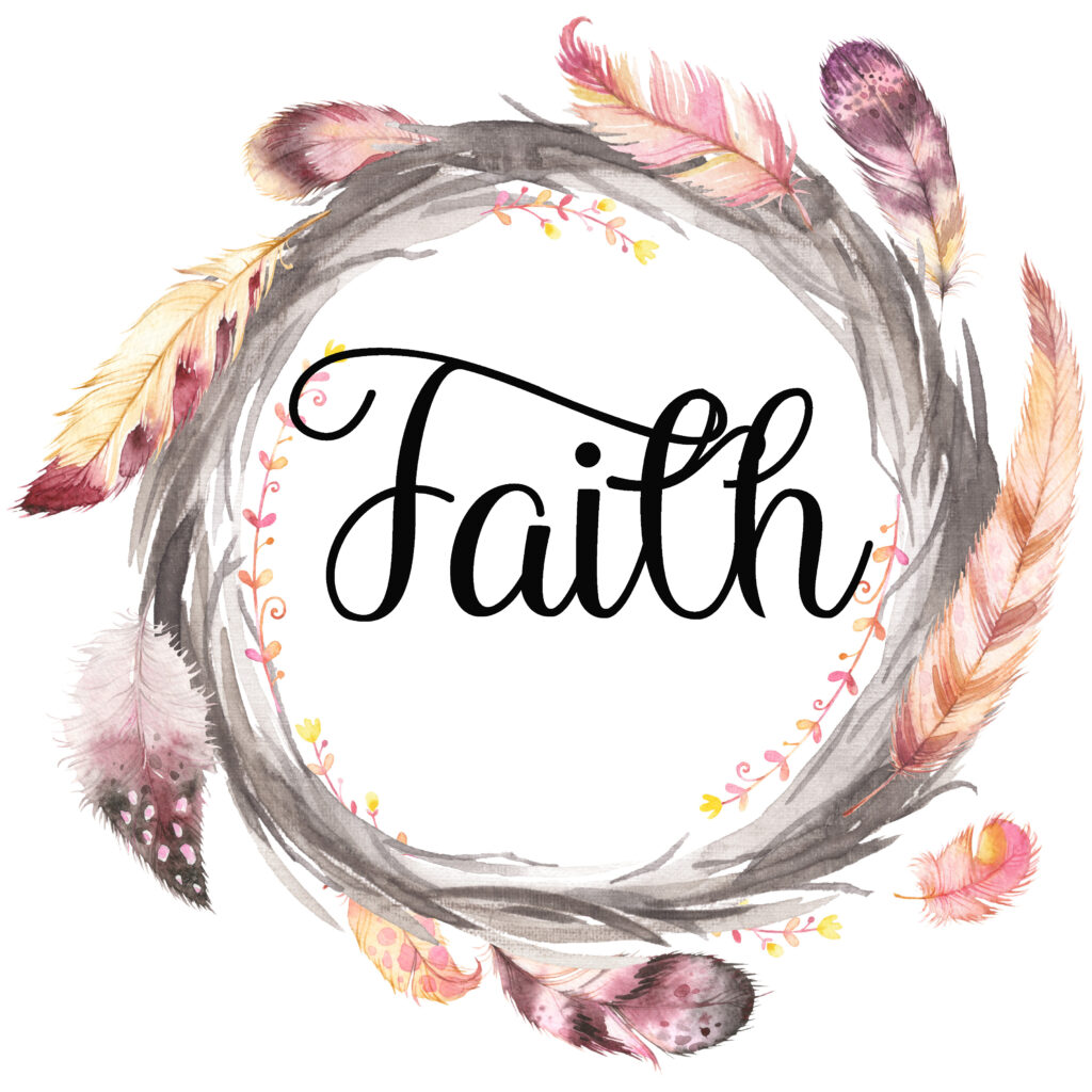 Faith Hope Love Feather Floral Wreath Square Art Print Set