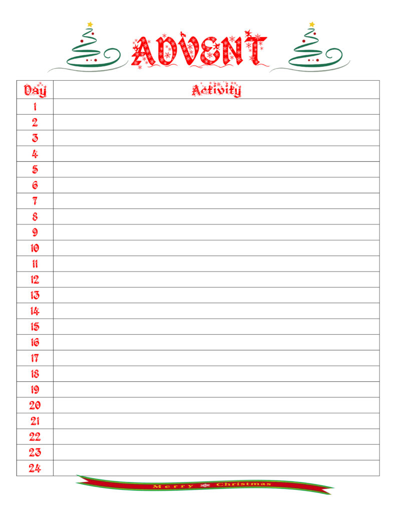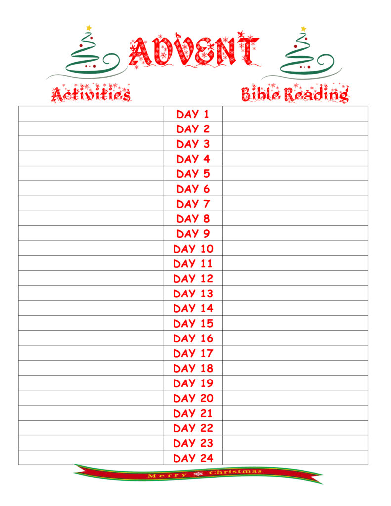 Space to organize all 24 days of activities so you can plan ahead and stay on track.
