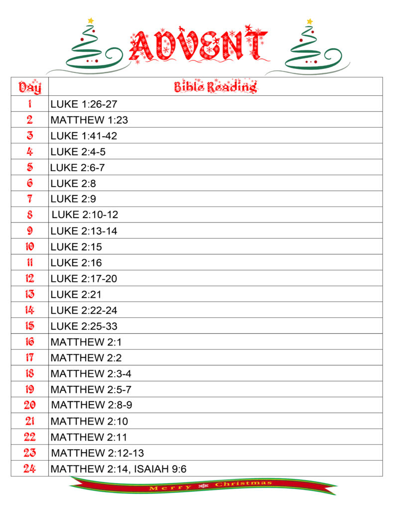 A layout to record daily scriptures for December 1–24—perfect if you want to use the included Luke, Matthew, and Isaiah readings or swap in your own.
