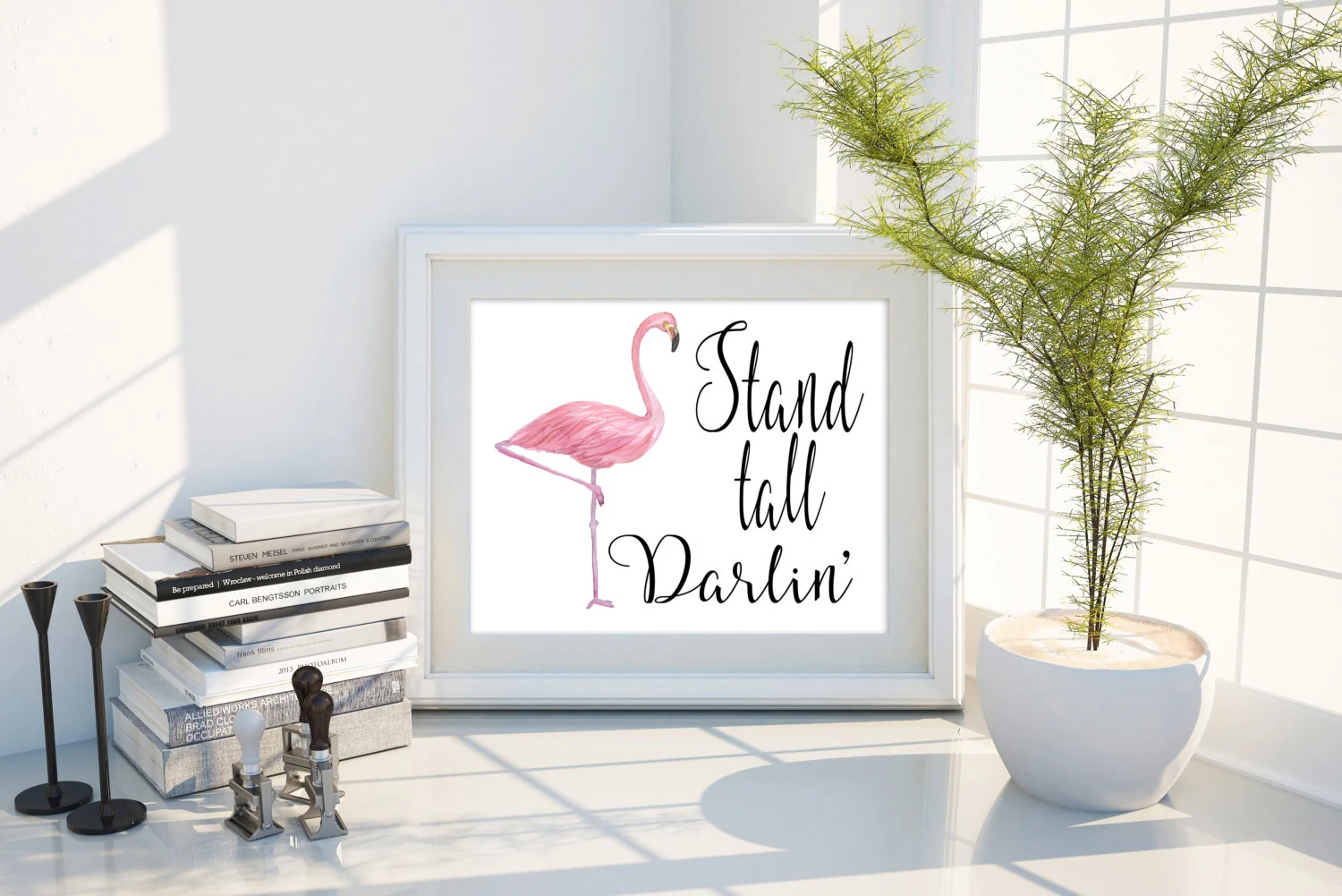 This watercolor pink flamingo wall art print with the quote “Stand Tall Darlin” will add a bit of southern charm to your decor and would look great in a little girl’s nursery or bedroom, any anywhere the ladies need a little inspiration and motivation.