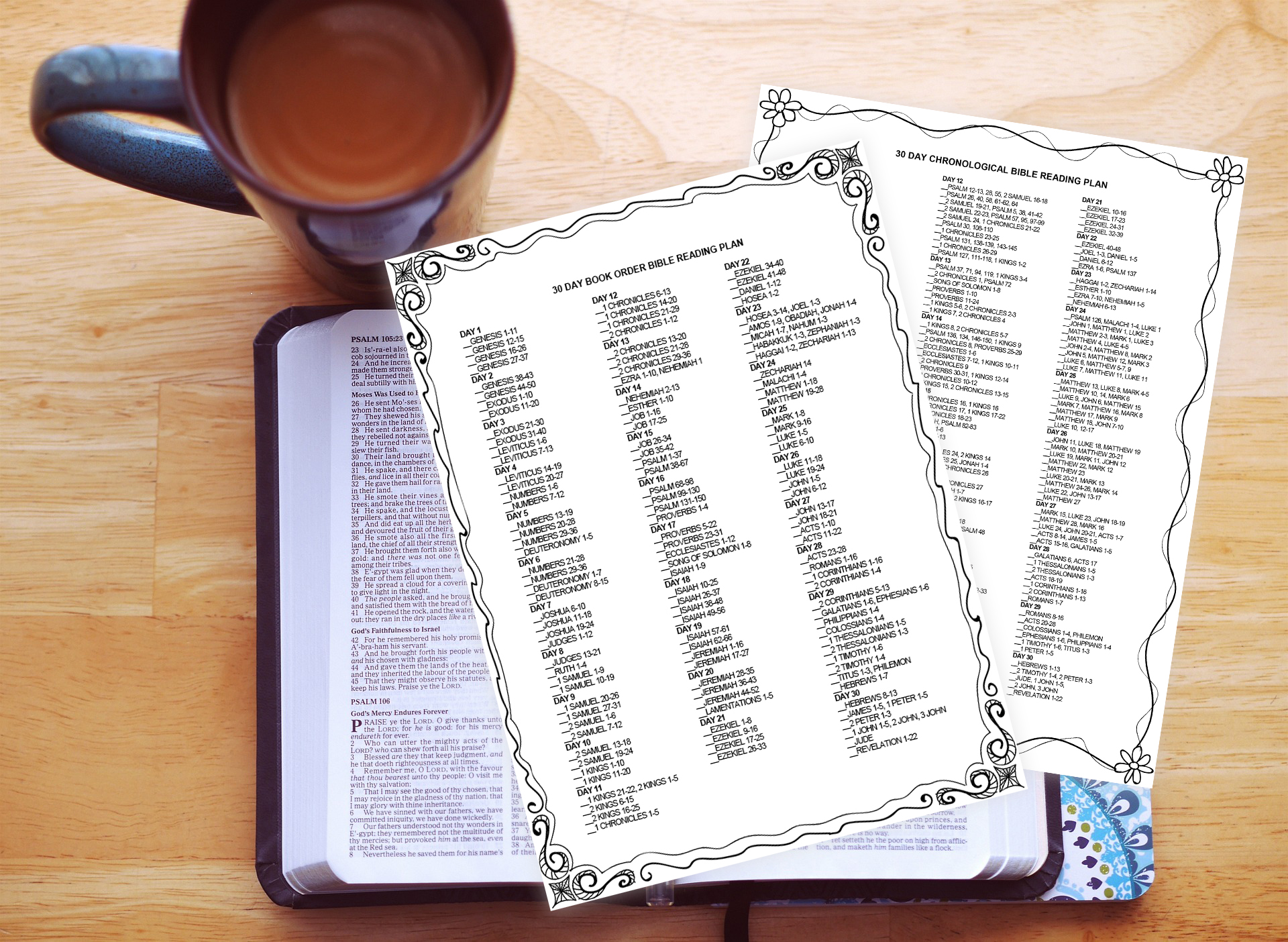 If you’d like to renew your mind and refresh your spirit, you can download the FREE 30 Day Bible Reading Plan Checklist. I prefer to read chronologically, but you may prefer book order, so download your preference. I would like to suggest you read chronologically because it will just flow together better.